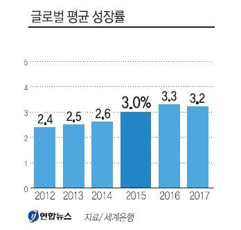 글로벌 평균 성장률은 지난해 2.6%를 보이고 나서 올해 3%로 올라선 뒤 2016년 3.3%, 2017년 3.2%를 기록할 것으로 예상됐다.