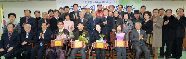 14일 전북일보에서 열린 (재)가천문화재단 후원 ‘2015 전북일보 신춘문예 시상식’에는 도내 문인 등 100명이 참석해 수상자를 축하하는 등 화기애애하게 진행됐다.