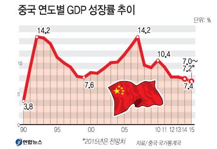 중국 국가통계국은 20일 기자회견을 열어 2014년 중국의 국내총생산(GDP)이 63조 6463억 위안으로 2013년에 비해 7.4% 증가했다고 발표했다.
