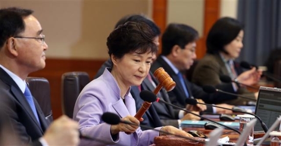 ▲ 박근혜 대통령이 20일 오전 청와대에서 열린 국무회의에서 회의를 개회하며 의사봉을 두드리고 있다. 연합뉴스