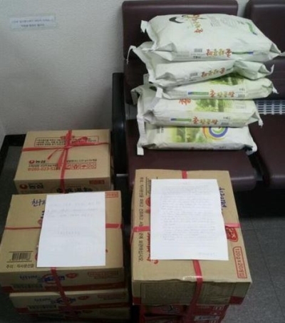 도통동주민센터에 따르면 지난 20일 오후 9시께 주민센터 현관에 “남원의 얼굴없는 천사가 되고 싶다”는 편지와 함께 10㎏들이 쌀 5포, 라면 10박스가 놓여 있었다.