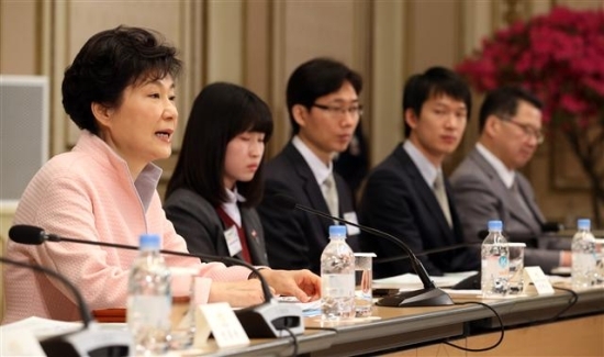 ▲ 박근혜 대통령이 22일 오전 청와대에서 열린‘국민행복’을 주제로 한 업무보고에서 발언하고 있다. 이날 보고에는 교육부와 문화체육관광부, 보건복지부, 고용노동부, 환경부, 여성가족부 등 6개 부처가 참석했다. 연합뉴스
