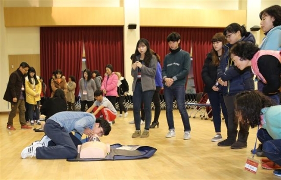 ▲ 국립김제청소년농업생명체험센터가 지난 25일부터 28일까지 3박4일간 청소년지도사 자격연수를 실시한다. 사진은 심폐소생술 교육 모습.