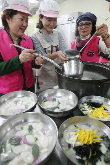 전주시여성자원활동센터(회장 김선자)는 28일 전주 용복동 사회복지시설인 소화진달네집을 방문하여 생활인들과 훈훈한 정을 나누기 위해 새해 맞이 사랑이 담긴 떡국을 만들고 있다.