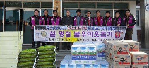 강갑구 금구면장은 “설 명절을 맞아 잊지 않고 생활형편이 어려운 이웃들에게 온정을 베풀고 있는 이교성 (주)신흥콘크리트 대표와 지평선로타리클럽 회원들께 감사드린다”면서 “기탁해 준 쌀 등 생필품을 주위 어려운 이웃들에게 잘 전달하도록 하겠다”고 말했다.