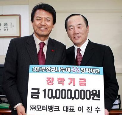 이진수 대표는“기업인의 한 사람으로서 이익을 고향 부안에 환원하는 차원에서 장학금을 기탁하게 됐다”며“어려운 여건 속에서도 열심히 공부하는 고향 부안의 후배 인재들에게 조금이나마 보탬이 됐으면 좋겠다”고 말했다.