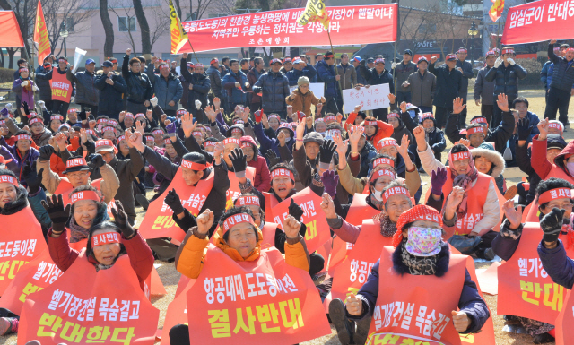 13일 전주시청 노송광장에서 전주 항공대대 이전 지역으로 검토되고 있는 전주시 덕진구 도도동 주변 전주 조촌동, 김제 백구면, 익산 춘포면 주민 250여명이 항공대 이전사업 반대 결의대회를 갖고 있다.