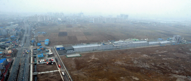 사진 가운데 효성 공장 위쪽으로 들어서는 국가주도형 지역특화탄소산업단지는 2016∼2020년 까지 전주 팔복동·동산동 일대 82만5000㎡에 2280억원을 들여 탄소공장을 비롯해 전문인력 양성 대학, 한국탄소융합기술원 등 관련 산학연 거점시설이 집적화한 특화단지를 조성할 계획이다.
