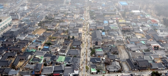 ▲ 전주시가 내달부터 한옥마을 전 구간을 ‘차 없는 거리’로 확대 운영키로 했다. 사진은 한옥마을 항공사진. 전북일보 자료사진