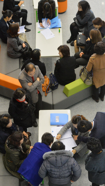 4일 농촌진흥청 소속 3개 기관(국립식량과학원, 국립원예특작과학원, 국립축산과학원)의 전북혁신도시 이전을 앞두고 열린 전북 지역인재 채용행사에 많은 구직자들이 참여해 이력서를 작성하고 있다. 이번 합동 채용규모는 390명의 기간제 근로자를 선발한다.