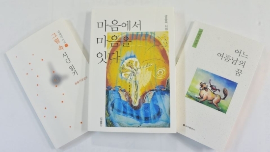 이에 앞서 교육자 출신의 김계식 시인은 희수(喜壽)를 기념한 16번째 시집 <그림 속 시간 읽기> 를 내놓았다. 그는 이번 시집에서도 매일 쓰는 일기 속에서 소재를 찾아 5마당으로 나누고 희수의 의미를 살려 77편으로 엮었다.