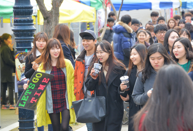3일 전북대학교에서 열린 새내기 동아리 모집에 학생들이 피켓을 들고 신입회원을 모집하고 있다.