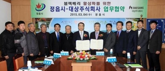 이날 김생기 정읍시장과 대상주식회사(이하 대상) 명형섭 대표이사는 관계 공무원과 대상 임직원 및 메이플 연구회 이성태 고문 등 20여명이 참석한 가운데 ‘정읍시·대상주식회사 블랙베리 활성화를 위한 업무협약’에 서명했다.