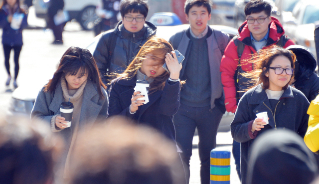 북서쪽의 찬 공기가 남하하면서 전국에 꽃샘추위가 기승을 부린 4일 전북대학교 교정에 학생들이 길을 걷고 있다.