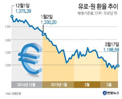유로·원 환율 하락은 유럽에서 물건을 수입하는 업체나 여행객들에겐 호재지만 한국 경제의 회복에 찬물을 끼얹을 수 있다. 뉴스