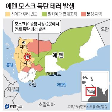이는 전날 예멘 수도 사나의 모스크(이슬람 사원)에서 연쇄 폭탄 테러가 발생해최소 137명이 사망하고 345명 이상이 다치는 등 2011년 ‘아랍의 봄’ 이후 최악의 테러가 발생한 직후 이뤄지는 것이다.