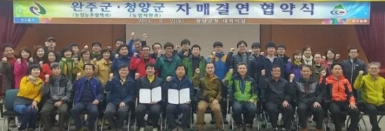 완주군과 충남 청양군은 지난 21일 청양군청에서 농정부서 공무원 50여명이 참석한 가운데 자매결연 협약식을 가졌다.