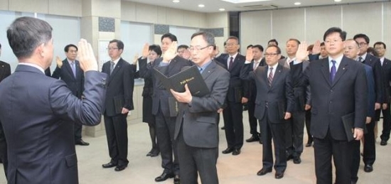 민원예방을 통해 ‘더 가깝고(Near) 더 건강한(Health)’ NH농협은행 구현을 위해 마련된 이날 결의대회에서 참석자들이 선서를 하고 있다.