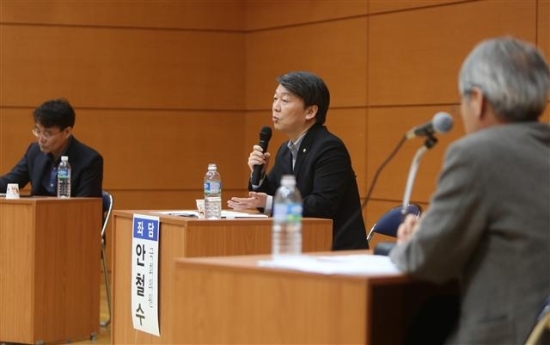▲ 지난 21일 부산시 서구 동아대 부민캠퍼스에서 열린‘안철수가 묻고, 장하성이 답하다’ 좌담회에서 안철수 새정치민주연합 의원이 참석해 장하성 고려대 교수와 이야기를 주고받고 있다.연합뉴스