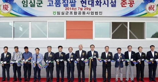 ▲ 지난해 열린 임실군 고품질쌀 현대화시설 준공식에서 심민 군수를 비롯한 참석자들이 테이프 커팅을 하고 있다.