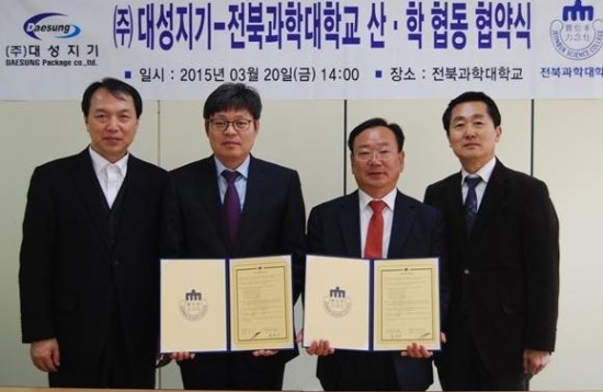 전북과학대학교(총장 황인창) 산학협력단(단장 김한수)과 (주)대성지기(황칠성 대표)는 지난 20일 전북과학대학교에서 산학협력을 위한 협약을 체결했다.