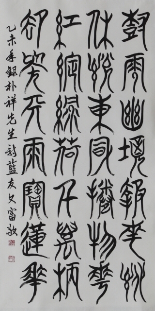 대상작인 문 씨의 ‘하첩(夏帖)’은 조선 전기 문신인 박상(朴祥)의 시로 문체는 중국 초나라시대 대나무에 쓴 글씨체의 필의에 작가의 서풍을 가미한 초간(楚簡)체다. 현대 서예인들이 많이 쓰지 않는 서체로 고법에 매우 충실하다는 심사평이다.