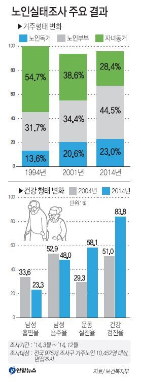 보건복지부는 31일 이 같은 내용을 담은 ‘2014년 노인실태조사’ 결과를 발표했다. 뉴스