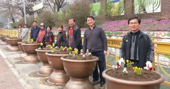 이날 봄맞이 환경정비 활동에는 회원 20여명이 참여했으며 20개의 대형 화분에 베고니아 꽃을 비롯한 화훼 5종류 300주를 식재했다.