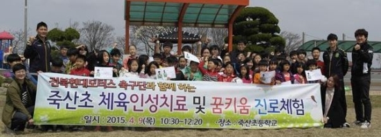 전북현대모터스 이재성·김형일 선수가 지난 9일 김제 죽산초를 찾아 멘토링 활동을 펼쳤다.