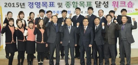 ▲ 설립 최초로 경영최우수 신협으로 선정된 전주 중앙신협 임직원들이 파이팅을 외치고 있다.