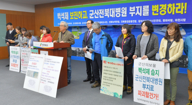 이들 단체는 “멸종위기종이 있고 문화재적 가치가 높은 백석제를 병원 설립 부지로 강행하는 것에 대해 특정기관이나 특정인에게 특혜를 주기 위한 것이라는 의혹이 일고 있다”며 “감사원은 군산시와 전북대병원의 부당·불법한 행정행위에 대해 즉각 감사를 실시하라”고 촉구했다. 이들 단체는 이어 “군산시가 최근에는 소속 공무원들까지 동원해 전북대병원 군산분원 설립 강행을 위한 서명운동을 펼치고 있다”며 “여론몰이를 즉각 중단하라”고 밝혔다.
