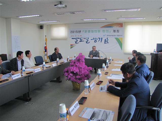 이날 소회의실에서 열린 회의는 제7기 운영대의원 위촉장 수여를 시작으로 2015년도 주요사업 추진계획 및 물관리운영, 농지은행사업 등 각종 사업 현안 설명과 영농급수 및 시설물에 따른 유지관리, 재해대책 등을 논의했다.