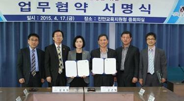 진안교육지원청(교육장 김귀자)와 진안홍삼연구소(소장 고근택)은 지난 17일 진로 직업체험 프로그램 MOU를 체결하였다.