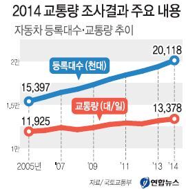 자동차 등록대수는 2004년 1493만4000대이었으나 지난해에는 2011만8000대를 기록했다. 지난해 2000만대를 처음 돌파했다.