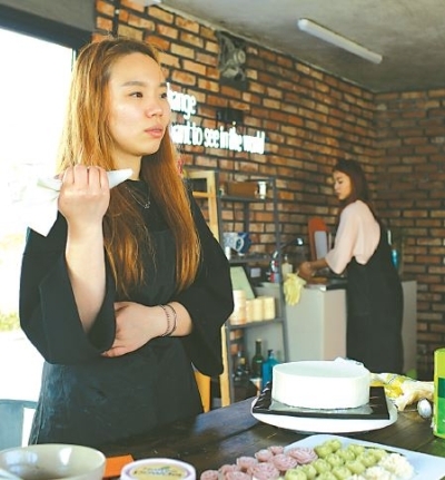 하얀 백설기 위에 “마음 가는대로 꽃을 만들고, 놓는다”는 그는 “떡이 어려운 것 같지만, 해보면 쉽고 재밌다. 만드는 사람들이 제대로 연구하고, 내 아이에게도 먹일 수 있게 만들어야 한다”고 소신을 밝혔다.