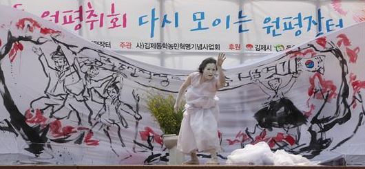 ▲ 지난 9일 김제 원평장터에서 열린 동학농민혁명 제121주년 대동제에서 서승아씨가 기념공연을 하고 있다.