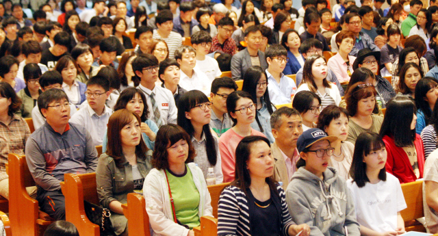 지난 9일 전주 기전여자고등학교에서 열린 ‘2016학년도 서울대학교 입학전형 입시 설명회’에서 수험생·학부모들이 진지하게 설명을 듣고 있다.