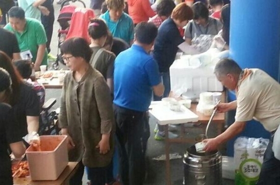 ▲ 지난달 31일 ‘제1회 단풍미인배 전국보치아선수대회’에서 자원봉사자로 참가해 급식·청소 등 봉사활동을 펼치고 있는 정읍경찰서 상동지구대 문성식 경위(오른쪽).