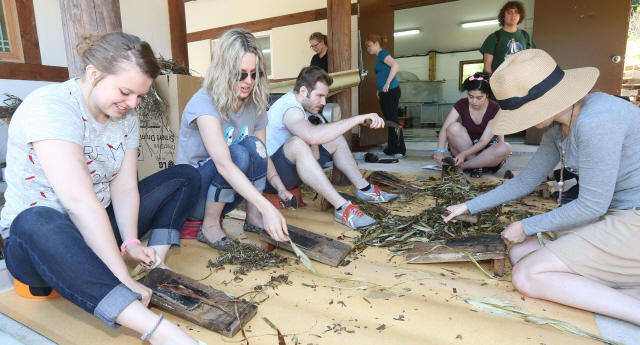 완주 대승한지마을에서 진행한 미국 대학생들의 여름학기 수업현장은 배움의 열기로 가득했다. 미국 위스콘신 주립대학 교수 6명과 예술대학 학생 11명이 3일 대승한지마을을 찾아 한지의 매력에 푹 빠졌다.