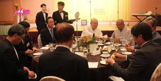 ▲ 원불교 중앙총부가 원불교 100주년을 앞두고 4일 르윈호텔에서 송하진 도지사·김승환 교육감 등 전북 주요 인사들을 초청해 오찬간담회를 갖고 있다.