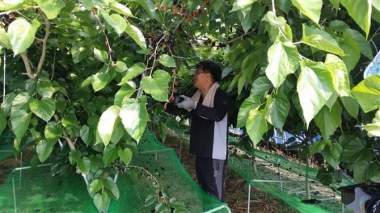 ▲ 부안지역 한 오디 농가에서 제철 맞은 참뽕오디를 수확하고 있다.