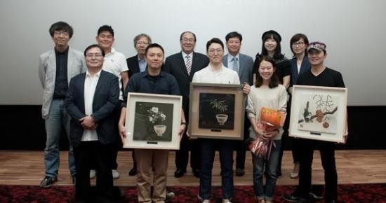 ▲ 제3회 무주산골영화제 수상자들이 기념촬영을 하고 있다.