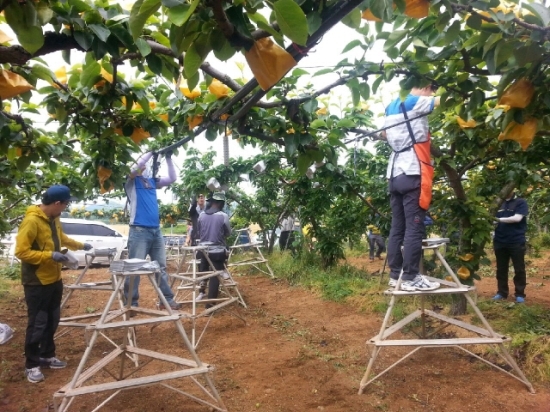축산과 직원 15명은 지난 5일 농촌 노동력의 고령화와 농업인구 감소 등으로 인력이 부족한 농가의 일손을 덜고, 농촌 현실을 직접 체험하기 위해 공음면 칠암리 소재 안삼례 농업인의 농가를 찾아 배봉지 씌우기 작업을 도왔다.
