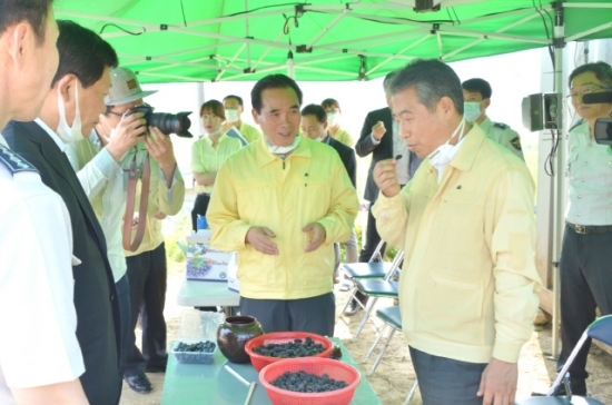 특히 정장관은 이 자리에서 메르스와는 아무 관련이 없는 농산물이 팔리지 않는 다는 말을 듣고 직접 주민들이 수확한 오디 블루베리, 복분자 등을 맛봤다.