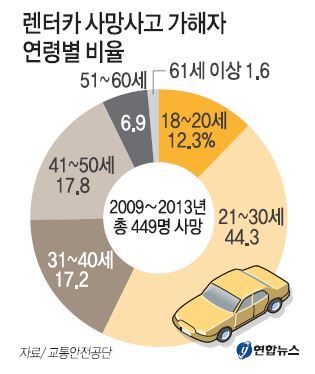 렌터카로 인한 사망사고의 56%는 가해자가 30세이하 젊은 운전자인 것으로 나타났다.