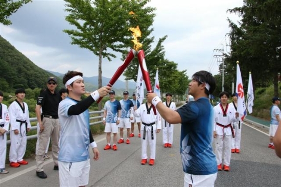 지난 19일 무주에 도착한 성화는 프랑스 소르본대에서 채화된 것과 광주 무등산에서 채화된 성화가 합화된 것으로 알려졌다.