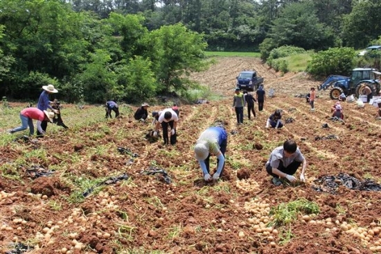 동진지사 직원 20여명은 이날 일손부족으로 어려움을 겪고 있는 정영선(65·황산면)씨 소유 감자밭(4380㎡)를 찾아 감자수확을 돕고 감자밭을 정리했다.