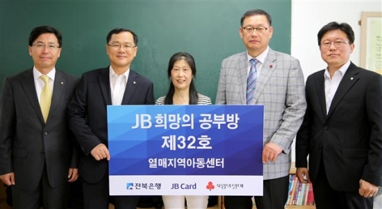 전북은행(은행장 임용택)은 25일 전주시 남노송동 일대의 저소득가정 아동들에게 방과 후 학습과 여러 교육프로그램을 제공하고 있는 아동복지시설인 열매지역아동센터에 ‘JB 희망의 공부방 제32호’를 개소하고 기념식을 가졌다.
