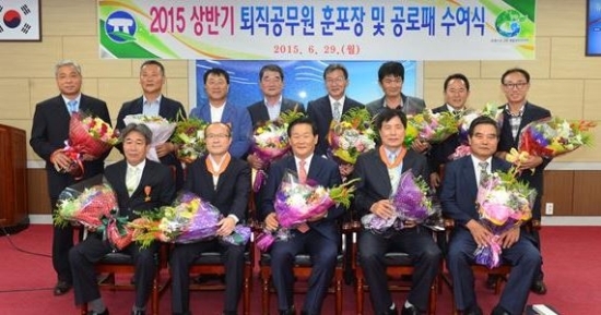 박우정 군수는 퇴임을 맞이한 조재길 지방서기관 등 7명에게 공로패를 수여하고, 김인호 전 부군수 등 10명에게 30년 이상 국가와 지역사회 발전에 이바지한 노고를 들어 홍조근정훈장, 녹조근정훈장, 국무총리 및 장관 표창패를 전수했다.