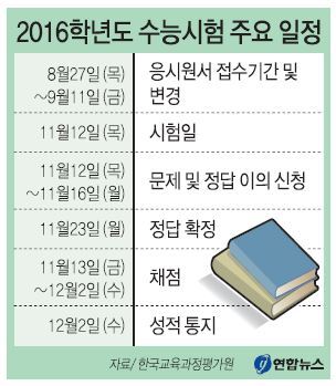 한국교육과정평가원(평가원)은 이런 내용을 담은 ‘2016학년도 대학수학능력시험시행 세부계획’을 6일 공고한다고 5일 밝혔다.